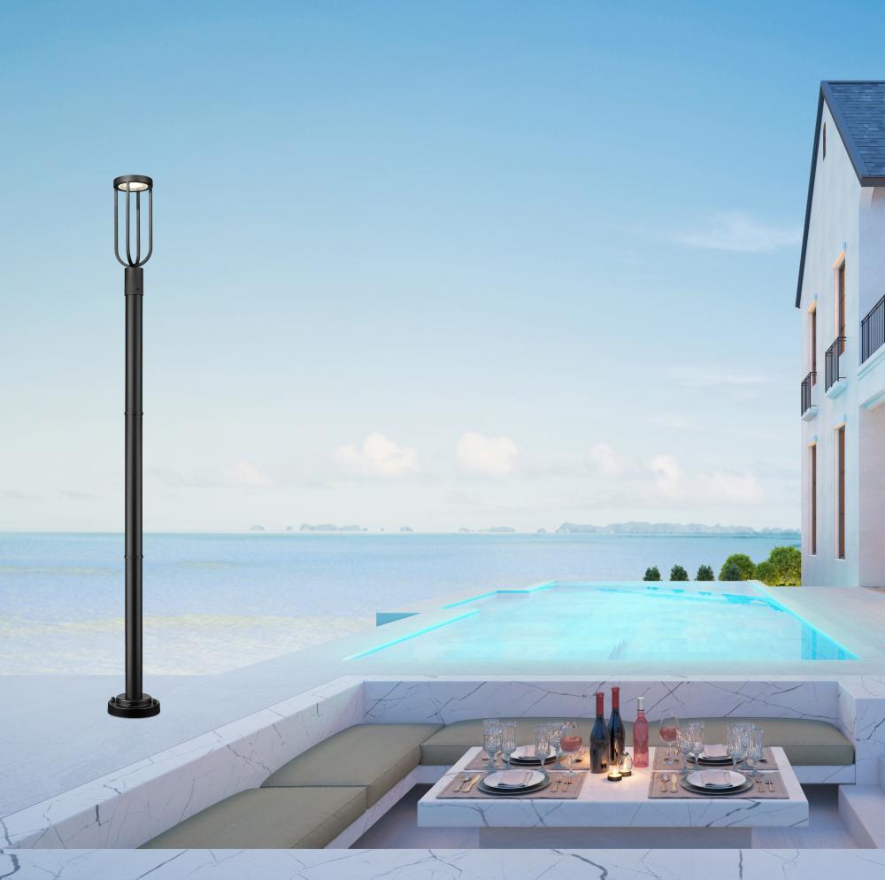 Freshen up your exterior spaces with the stylish silhouette and selectable color temperature featured in this modern one-light outdoor post mount fixture. Perfect for your deck, patio, or walkway, the light features an energy efficient LED and a sand black finish for marine-grade durability, all complementing a sleek silhouette that includes an open cage lantern with a teardrop shape that adds graceful elegance.