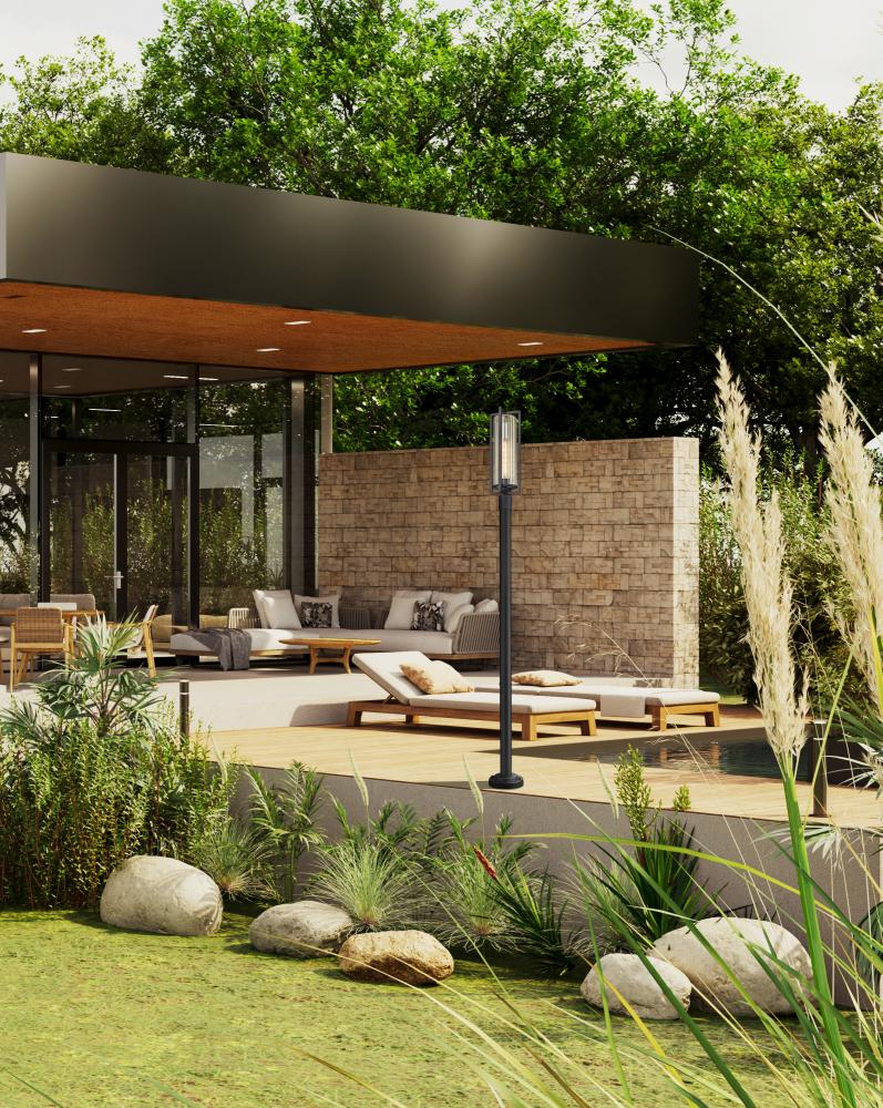 A timeless design offers the utmost sophistication in exterior lighting as this one-light outdoor post-mounted embellishes any setting. Cool Coastal black painting over aluminum construction plays nicely with textural elegance in ribbed glass, as a dimensional silhouette adds a new perspective.