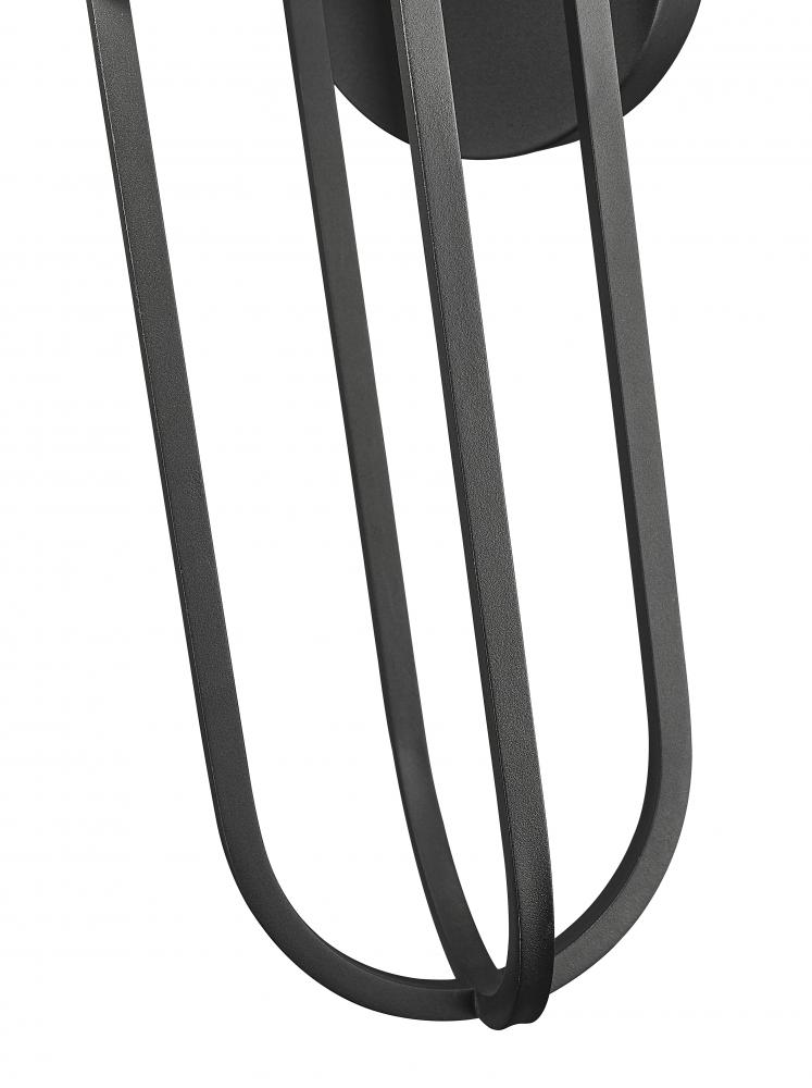 A modern one-light outdoor wall light is designed to impress with illusory design at the forefront. Its an energy efficient LED fixture that features an open teardrop cage shade with its light tucked at the top for a seamless look and feel. Sure to capture attention on the porch or patio, the light features a marine grade sand black finish and offers a selectable color temperature that allows you to create the perfect ambiance for your homes exterior.