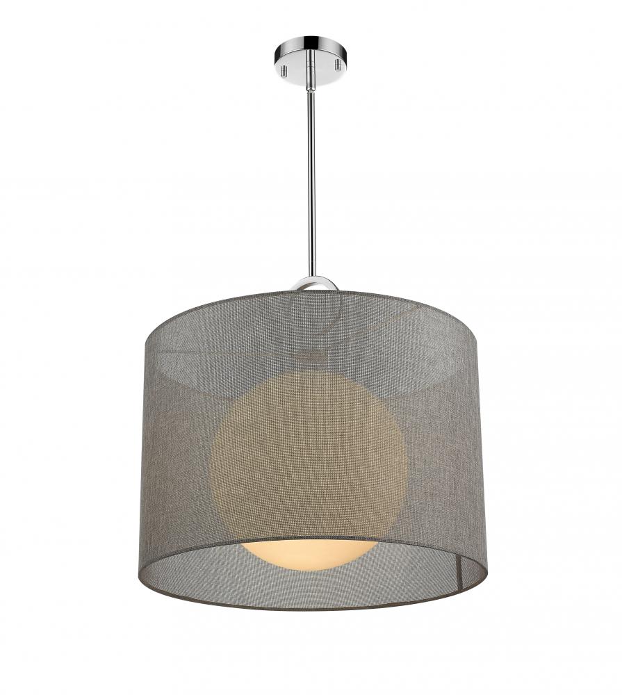 A bold, gray fabric shade lends a touch of modern flair to this eye-catching, single-light pendant. From bedrooms to dining rooms to living rooms and more, this gorgeous, chrome fixture will elevate your living space to new heights of style.