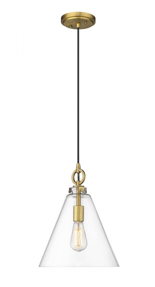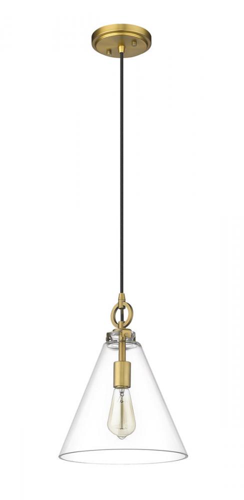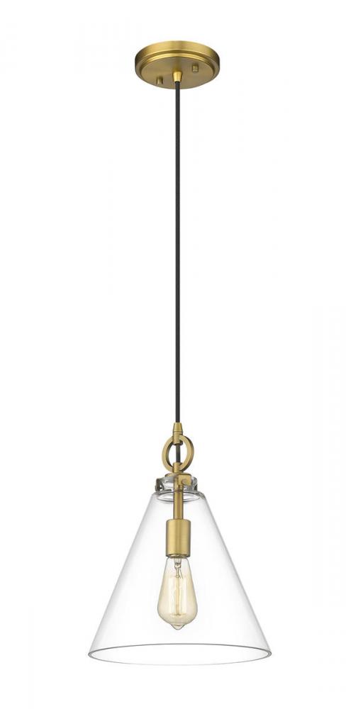 Light up a bedroom or living room with this sleek, modern, rubbed brass pendant light from the Harper collection. Crafted with clean lines and a clear glass shade, this metal pendant light is an elegant addition to transitional or modern d?cor.
