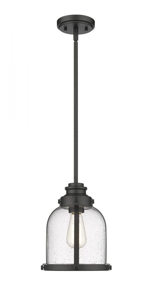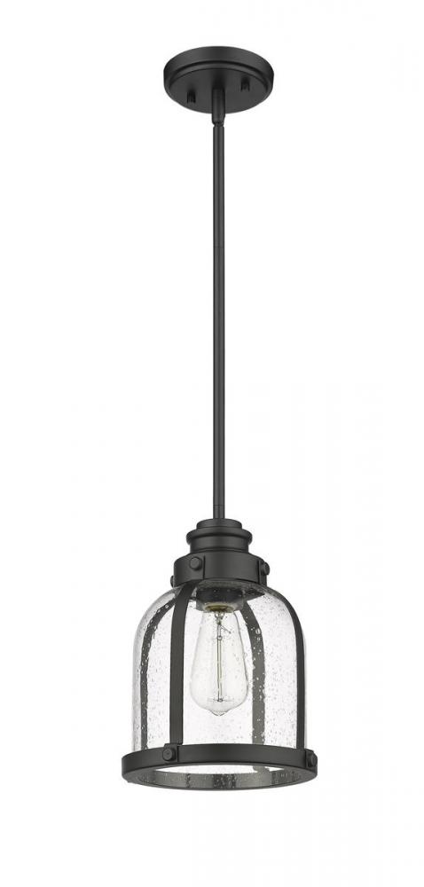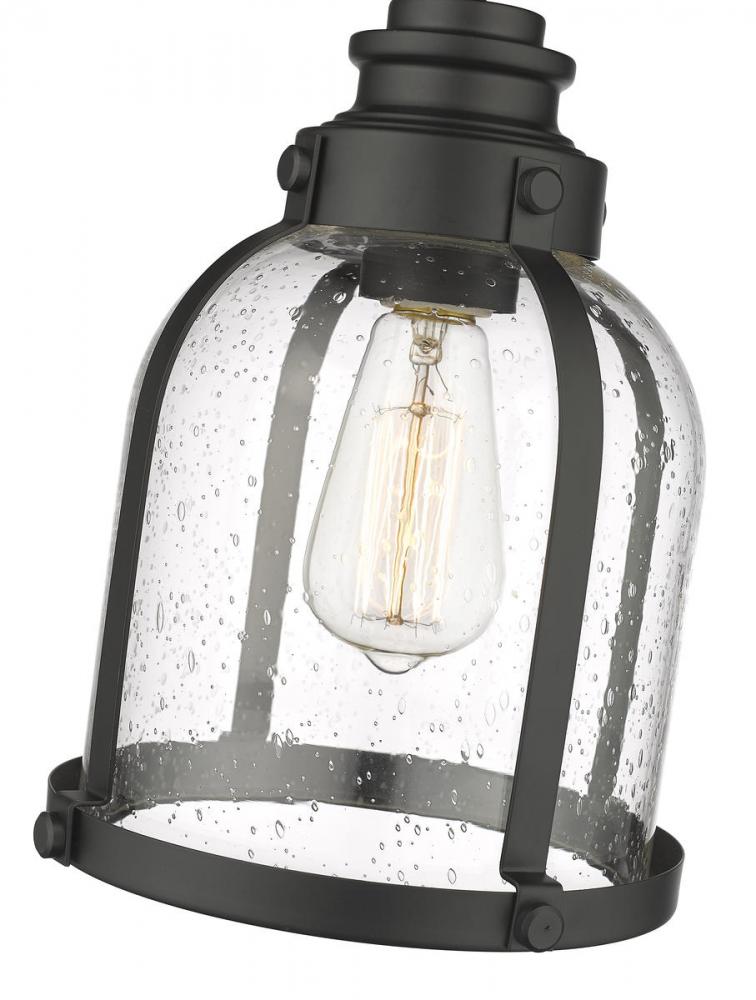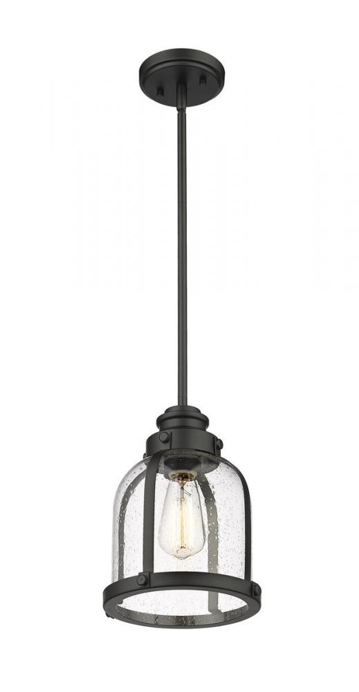 Indulge in a love of historical themed d?cor with this elegant one-light mini-pendant. A steel frame with matte black finishes offers a fitting host to a stylish domed shade crafted from romantic clear seedy glass.