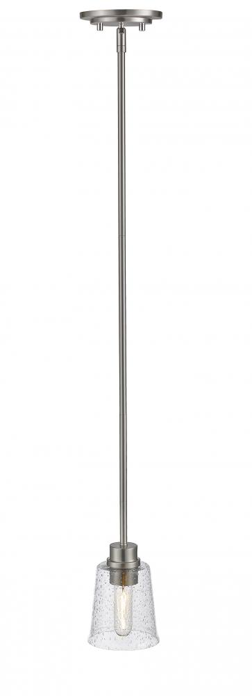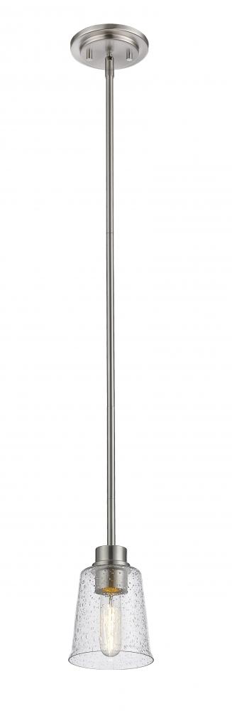 A stylized space counts on chic, design-forward accents, and this brushed nickel steel pendant light offers a fresh dose of beauty. With a romantic clear seedy glass shade and a steel frame, its extended drop adds both drama and energy to a contemporary or transitional living area.