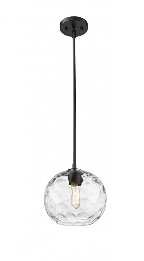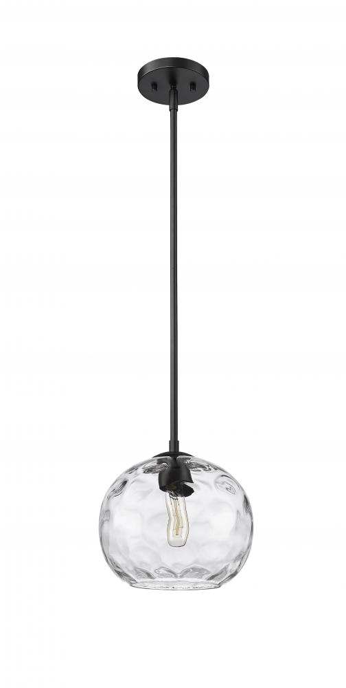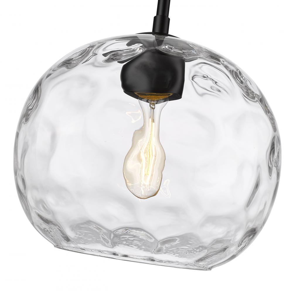 Define your modern space with the eye-catching, streamlined presence of this one-light pendant. Rounded shades are made from clear, water-textured glass, suspended from a sleek steel frame with a matte black finish. Your contemporary dining room or family space gets an instant boost with this sophisticated fixture.