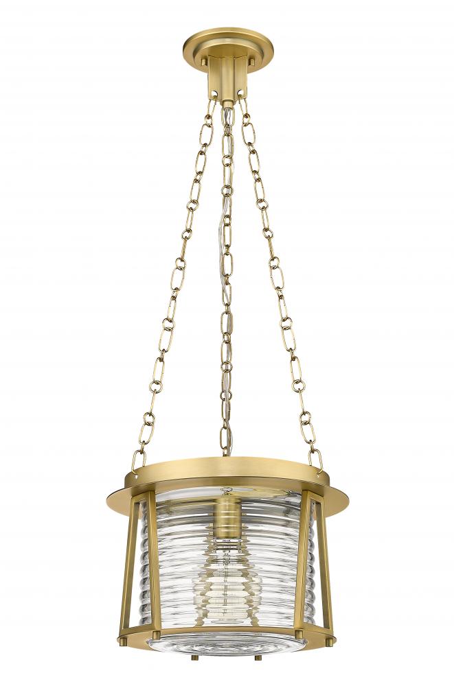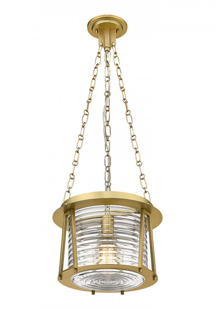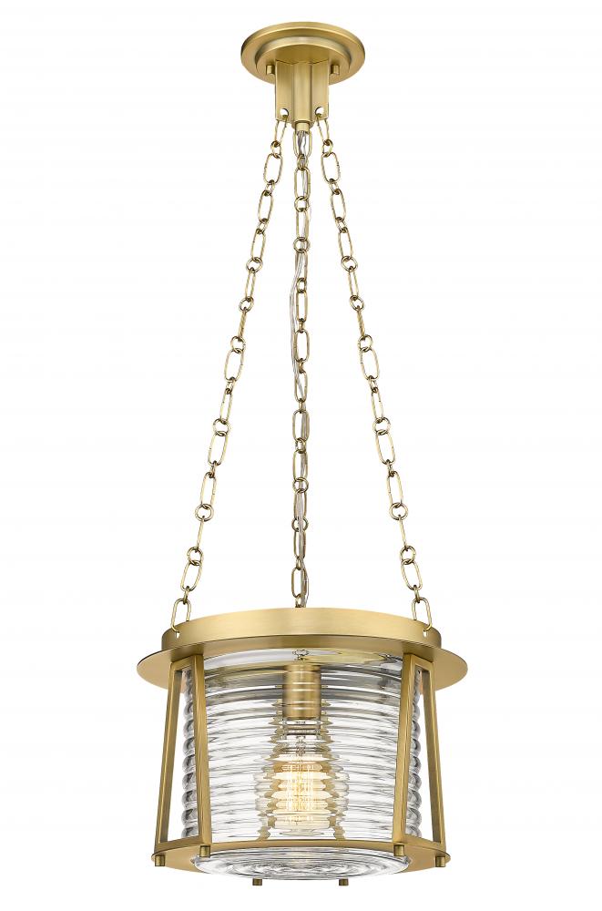 Elevating a glam look with nautical personality, this one-light pendant from the Cape Harbor collection becomes a fast favorite. Embrace complex style elements that blend rubbed brass finish steel with alluring water-hammered glass to repurpose a maritime motif. Coastal-inspired spaces benefit from this charming artisanal pendant offering an abundance of personality.