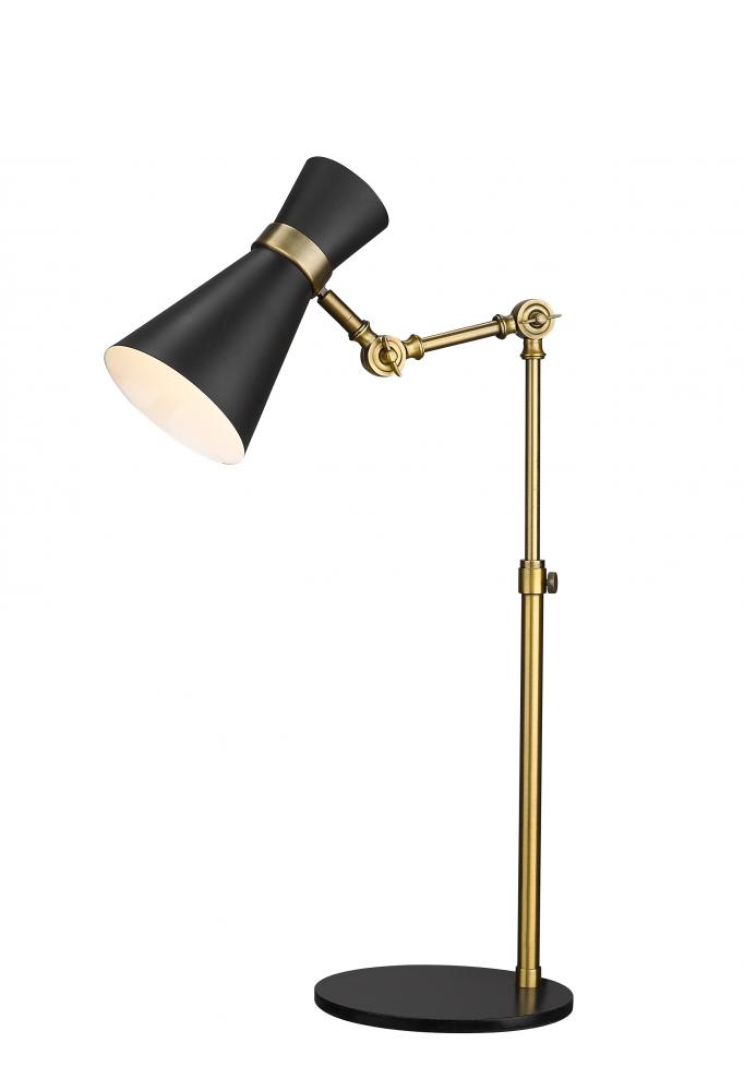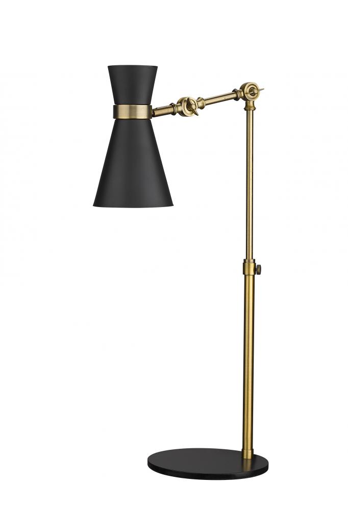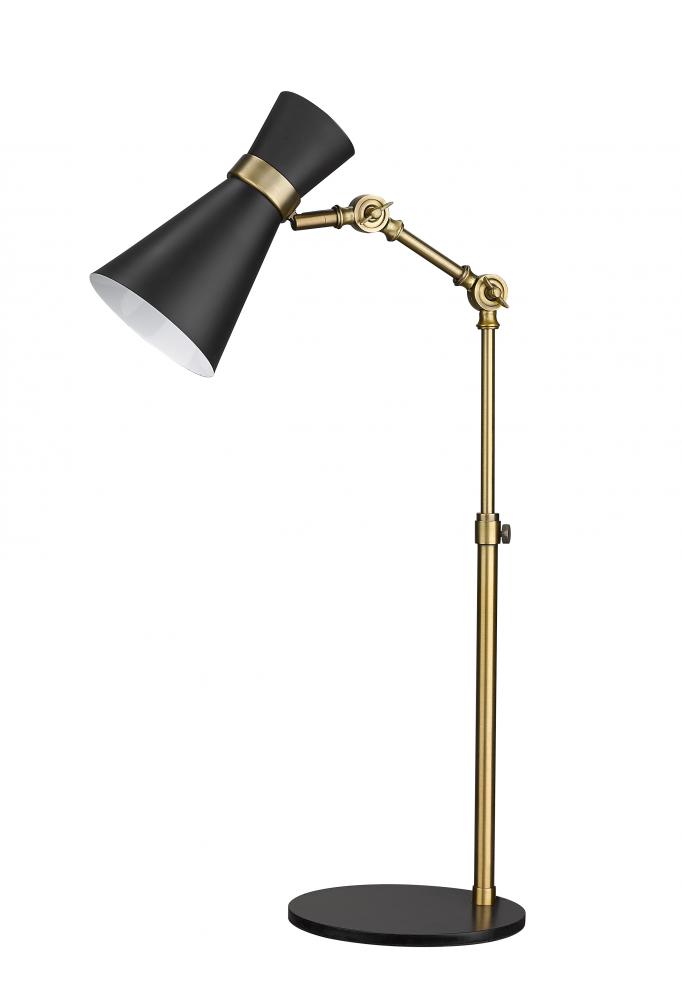 A character-rich studio theme shapes industrial influence that adds casual elegance to this matte black finish steel table lamp. This lamp features a touch controlled shade with thrree levels; high, low and off. Dress up a living room or office space with this tasteful fixture trimmed with heritage brass finish steel. This sleek fixture reflects the heart of romantic industrial charm while adjustable settings make this lamp an ideal addition to office and task-dedicated spaces.