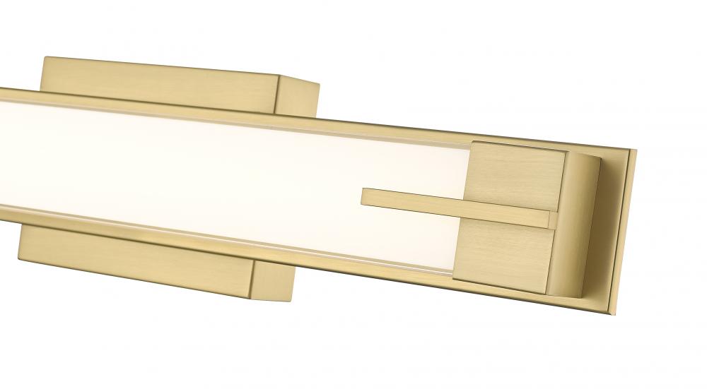 Youll love the sleek linear silhouette of a modern LED vanity fixture, perfect for a contemporary bath. A rectangular wall plate and bracket details highlight its modern gold finish frame, crafted from steel for excellent quality. A diffuser is crafted in silk white glass, casting bright, even illumination thats ideal for all your beauty and grooming needs.