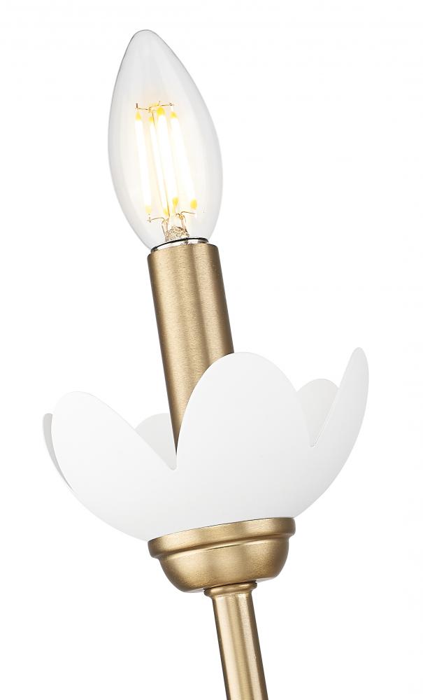 a modern gold finish introduces charming richness and warmth to a transitional sconce with vintage character. Its a floral design that comes with interchangeable white metal and clear glass bobeches, each of which offers a flower petal motif thats sure to delight. Add this charming fixutre to a bedroom or cozy library for inviting ambiance.