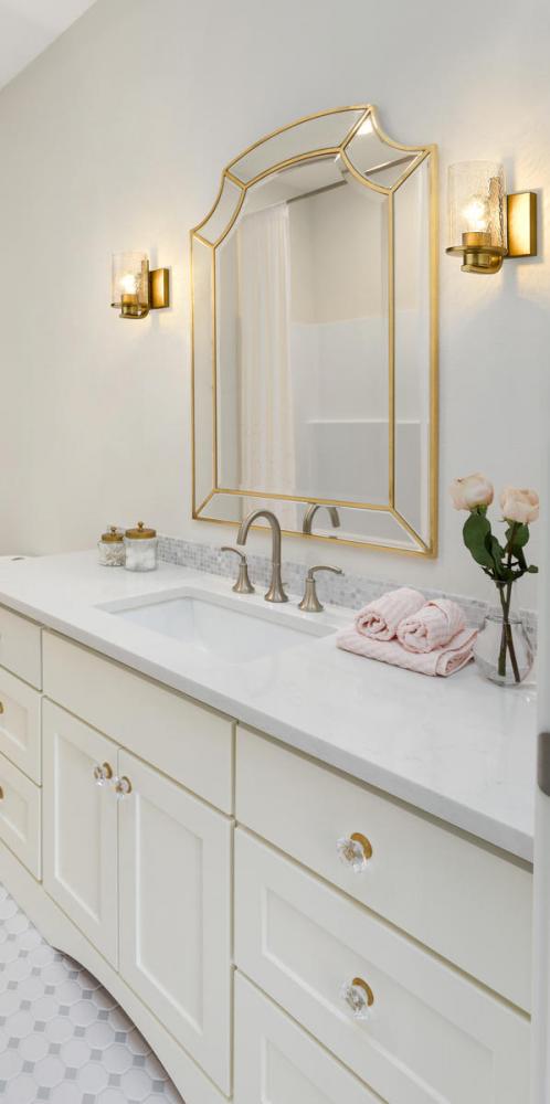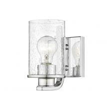 Classic elegance follows this one-light wall sconce from the Beckett collection, a superb choice for a contemporary bath space, hallway, or main living area. A simple yet extraordinary design blends romantic clear seedy glass with a mount, base, and arm crafted of warm olde brass finish steel.