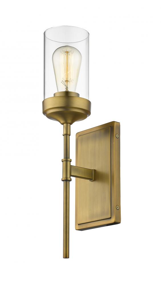 Foundry brass offers a warm, rich finish to this charming steel one-light wall sconce. With a slender build and industrial aesthetic, its frame and mount play host to a delightful clear glass shade that shields a vintage-era bulb.
