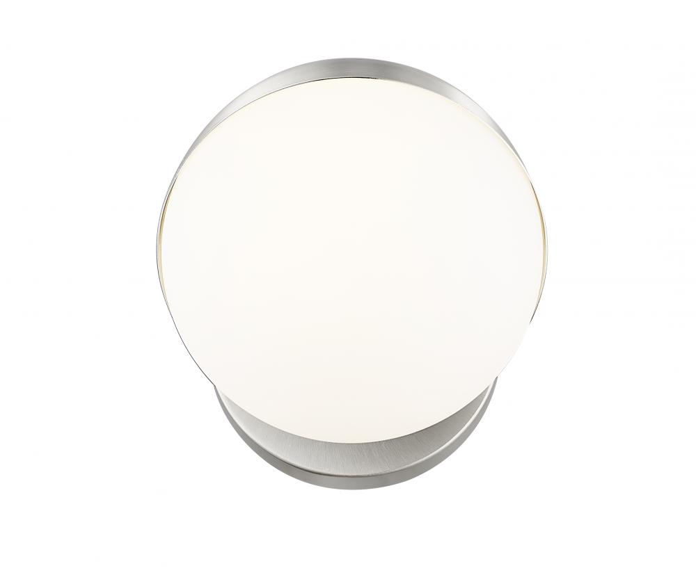 A moveable metal shield adds the ultimate flexibility to this mid-century one-light globe wall sconce. Its lovely matte opal glass orb shade casts soft, inviting illumination, while its simple framework receives a brushed nickel finish that brims with stylish versatility.
