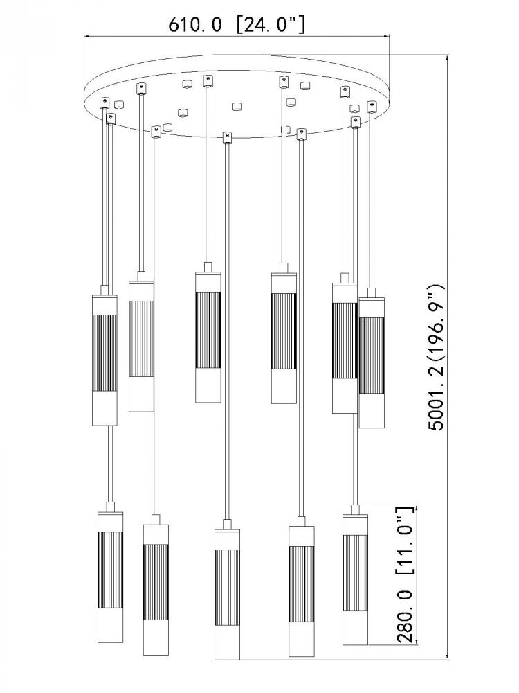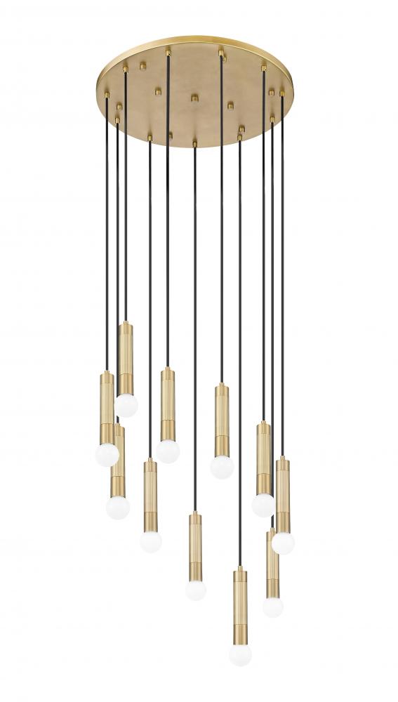 Add a little glam energy over your entry or dining room with this modern 11-light chandelier. In a modern gold finish, it gleams with warmth while offering bright, diffused illumination. A round canopy sets the tone while braided cords and elongated tubes add to a simple, sophisticated silhouette.