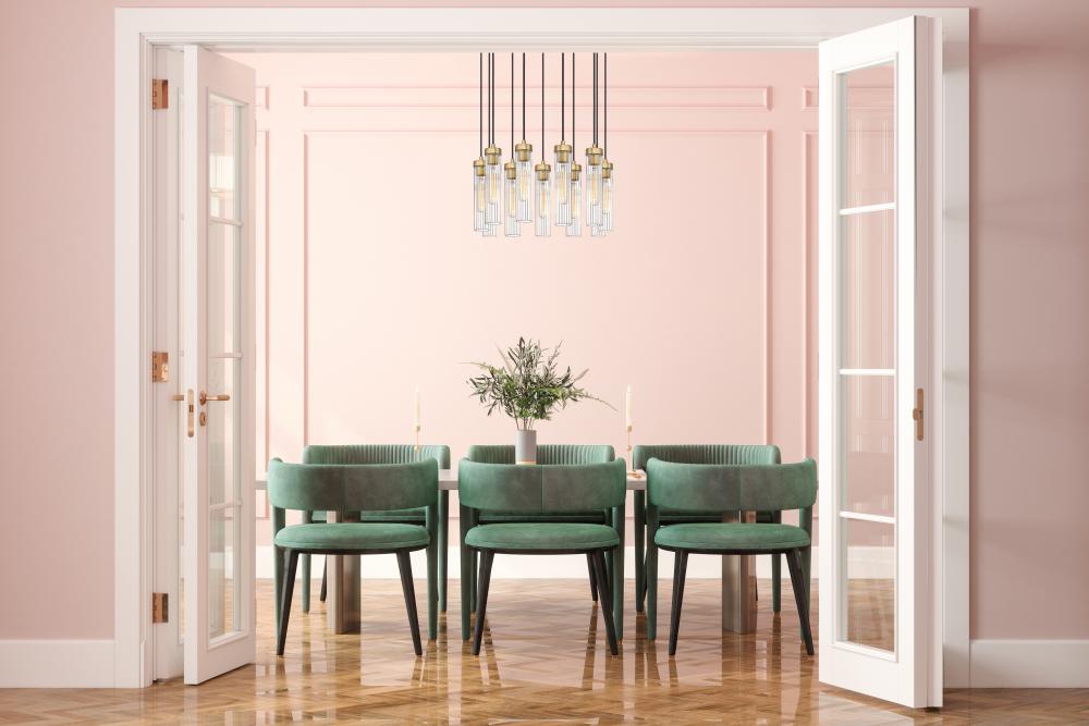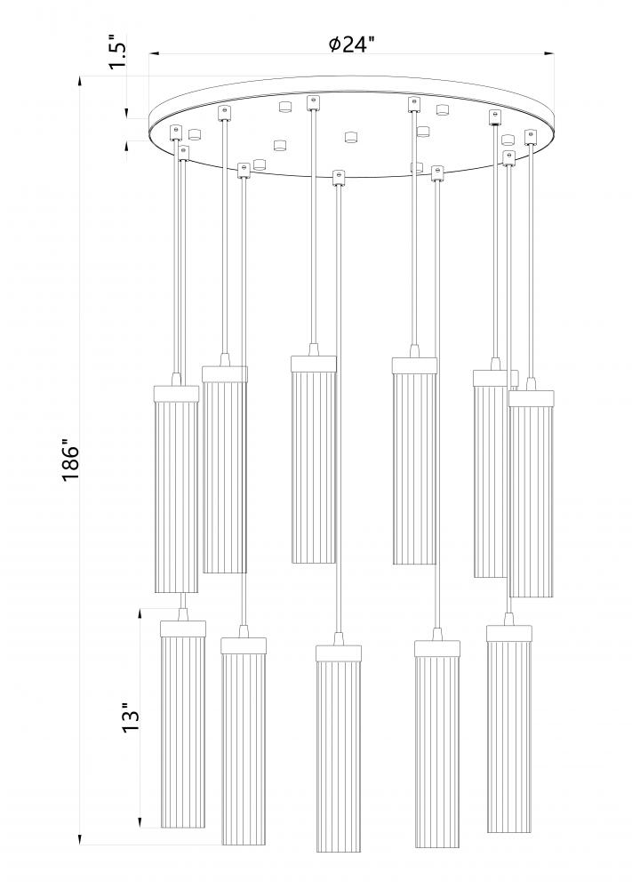 An enticing mix of fine art and sophistication completes the glam look of an eleven-light chandelier created for impact. A rounded cluster of delicate fluted glass shades is both chic and minimalist, offering pure organic inspiration. Highlight a nook or reading space with this exquisite chandelier accented with a rich rubbed brass finish metal canopy.