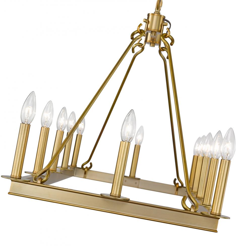 This majestic twelve-light island/billiard light makes an elegant addition to your home lighting collection. Its crafted in a gorgeous olde brass finish and features the candle-inspired lights in a vibrant rectangular design. Its the ideal light for the dining room, foyer, kitchen, or entertainment room.