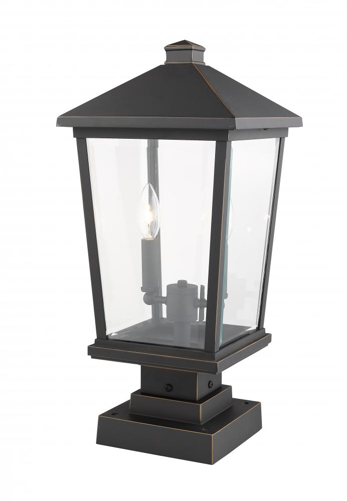 A charming candelabra bulb base cements the sweet nostalgic village theme of this outdoor post lantern. Finish a custom patio or garden space with this elegant lamp, which features a cool rubbed bronze finish.