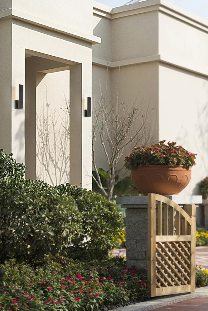 Create a glowing wash of light across your homes fa?ade with a modern two-light outdoor wall light. Its facing receives a textured, marine-grade sand black finish to highlight a sleek, slim silhouette complete with sharp corners and clean lines. From behind, light glows from two energy efficient LEDs through a white diffuser for the perfect lighting in every setting. This fixture offers selectable color temperature with five options ranging from 2700K to 5000K for the perfect ambiance.