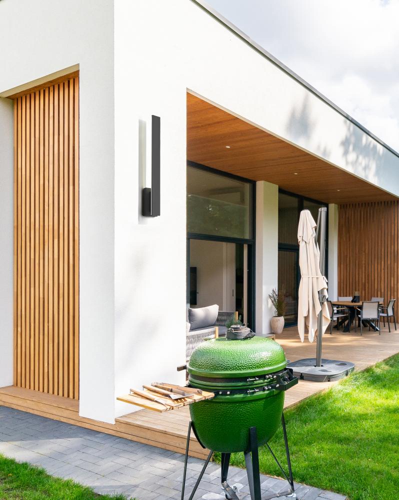 A towering silhouette creates rich, engaging style for a minimalist modern two-light outdoor wall light that casts a lovely glow across your fa?ade. Its facing receives a textured, marine-grade sand black finish to highlight a sleek, slim silhouette complete with sharp corners and clean lines. From behind, light glows from two energy efficient LEDs through a white diffuser for the perfect lighting in every setting. This fixture offers selectable color temperature with five options ranging from 2700K to 5000K for the perfect ambiance.