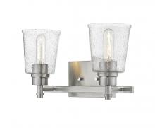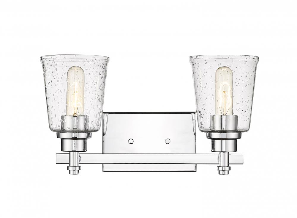 The heady effect of clear seedy glass brings a romantic touch to this chrome finish two-light vanity light. Enjoy an elegance that comes from classic design detailing on its steel frame, and a versatile way to add extra illumination to a contemporary or transitional space.