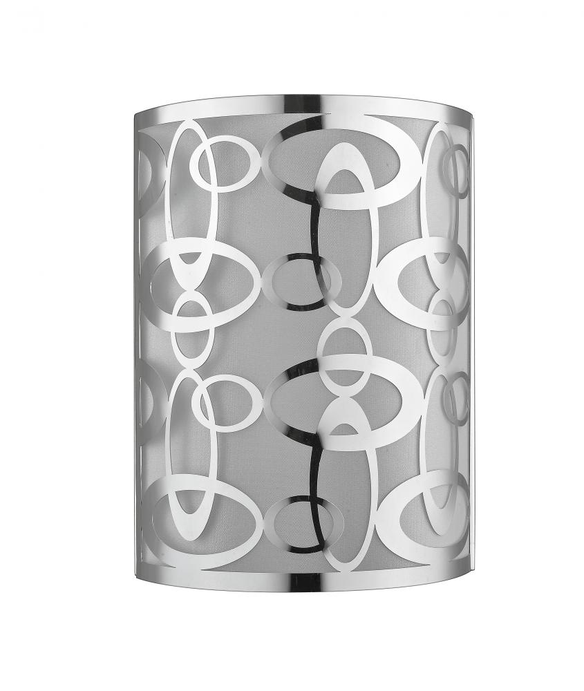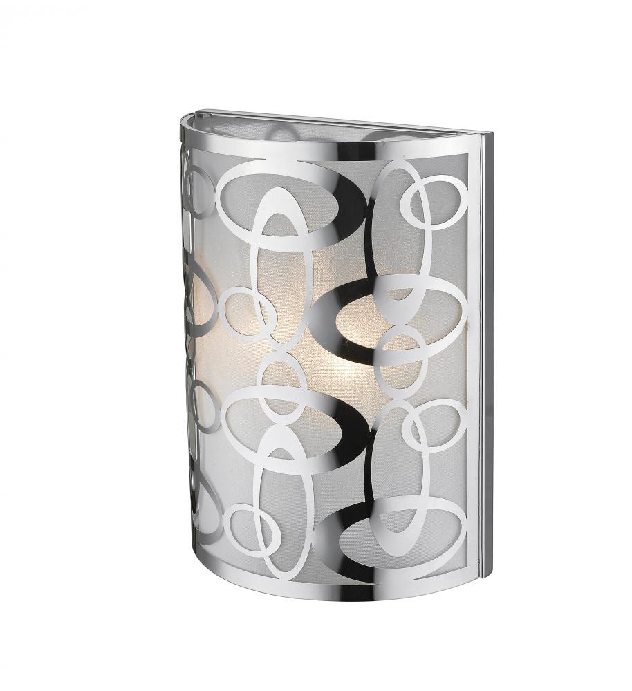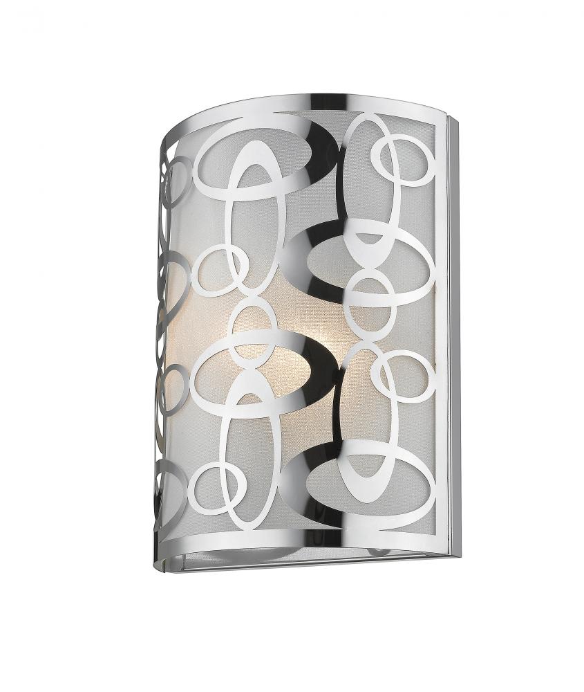 Embellish a metropolitan d?cor scheme with spot lighting designed to impress. Artistic and ethereal elliptical cutout shapes float on a shiny chrome finish frame, while a soft organza shade ties up the tasteful ambiance of this two-light wall sconce.