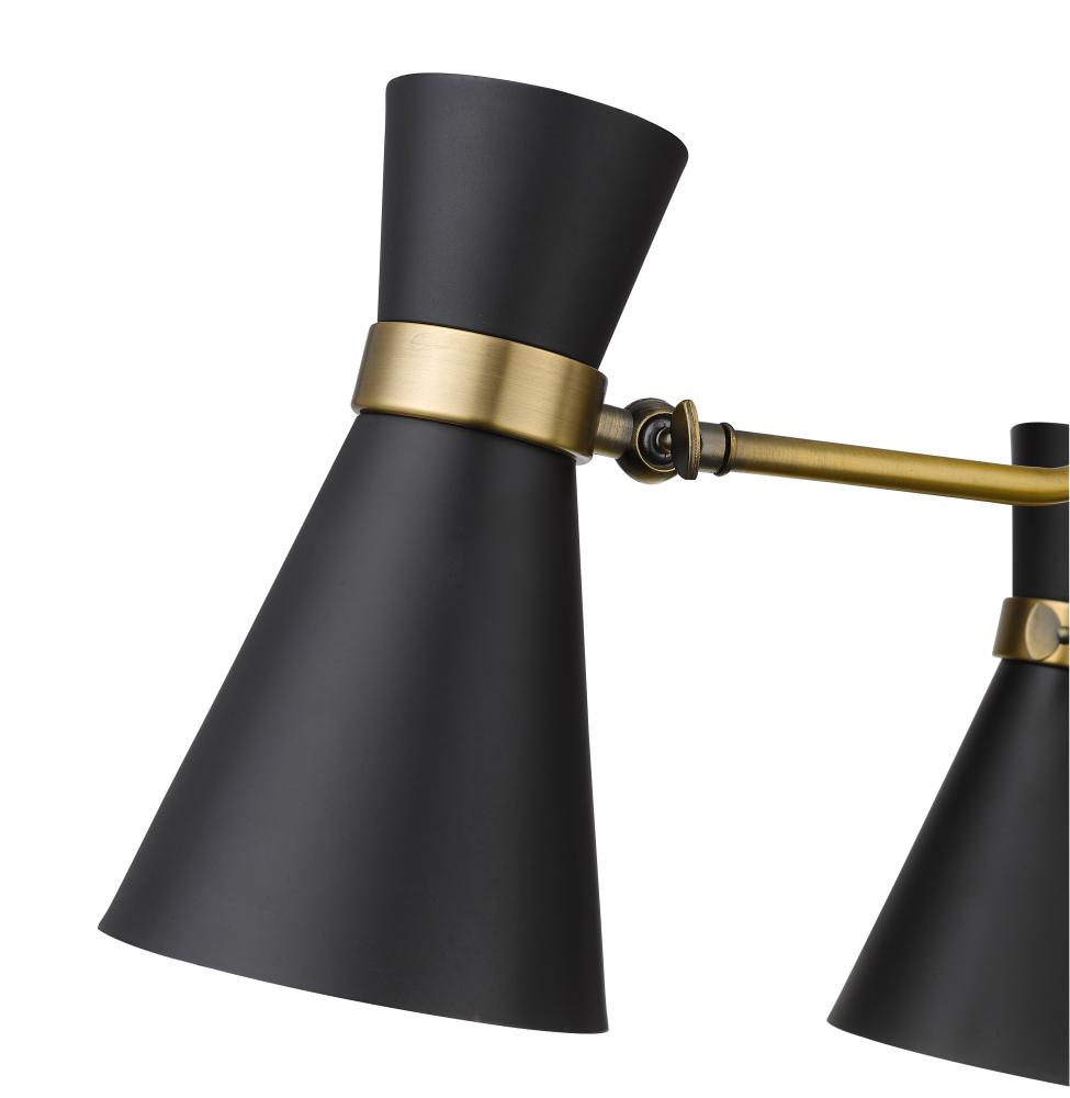 The Soriano Collection design in a mixed metal hourglass shape with asymmetric flair is the attractive focal point of this collection. The black finish is accented by brass or chrome details. Adjustable directional shades make this collection not only fash
