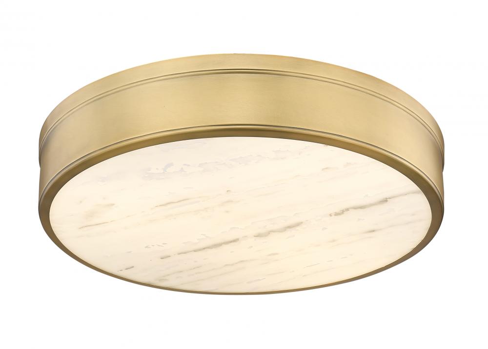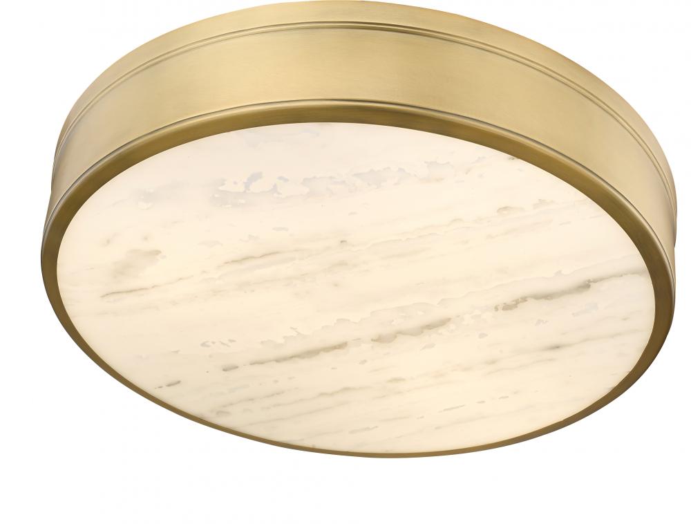Classic retro inspiration goes sleek and modern in a light fixture created to impress. This three-light flush mount ceiling light from the Anders collection perfects minimalism with a warm rubbed brass finish circular frame and a delicate, translucent alabaster diffuser. Choose this flush mount ceiling light to embellish a tasteful design scheme with ambient lighting.