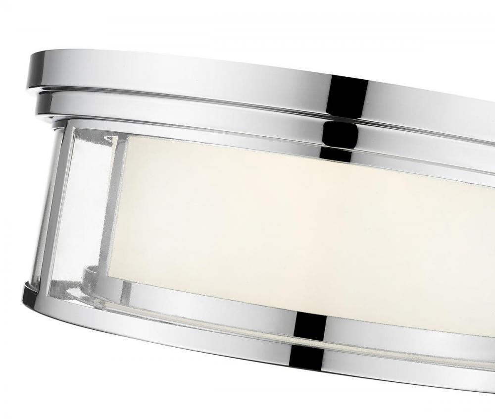 A straightforward design reflects classic beauty and contemporary elegance with a hint of industrial flair, transforming the Willow three-light flushmount ceiling light into a decorative addition to modern spaces. With a radiant chrome finish metal frame, its inner matte opal shade and protective outer clear glass shade team up to create a statement-making way to illuminate a modern kitchen, dining space, or hallway.