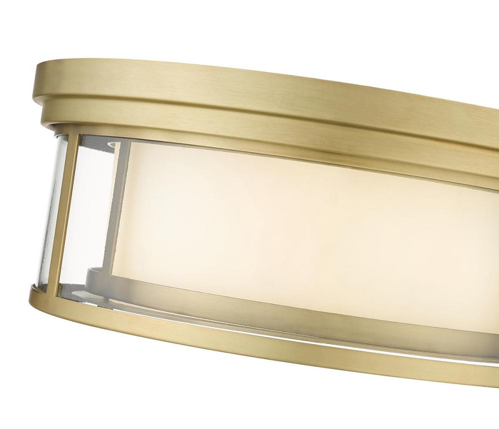 A straightforward design reflects classic beauty and contemporary elegance with a hint of industrial flair, transforming the Willow three-light flushmount ceiling light into a decorative addition to modern spaces. With a romantic olde brass finish metal frame, its inner matte opal shade and protective outer clear glass shade team up to create a statement-making way to illuminate a modern kitchen, dining space, or hallway.