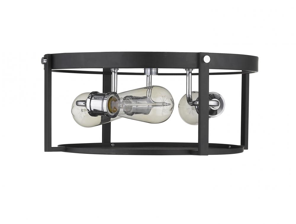 Celebrate modern style with the bright hues from this three-light ceiling light. The rounded silhouette features clean lines in an eye-catching matte black and chrome finish.