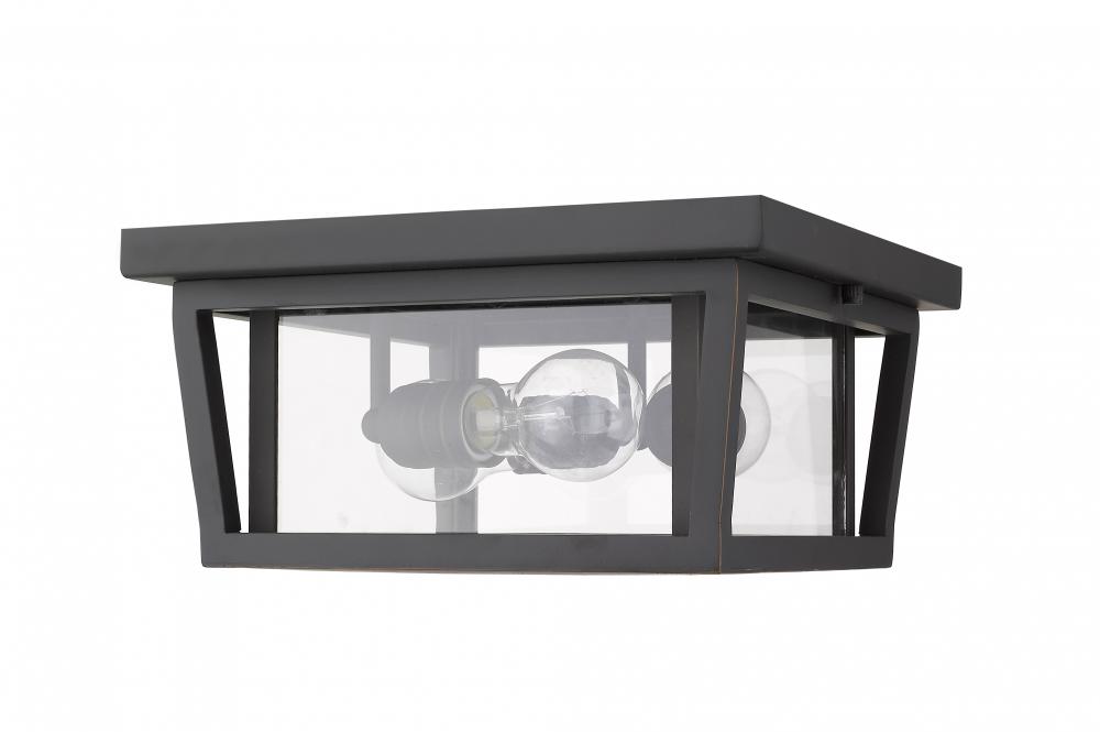 Exterior structures benefit from ambient lighting, and this flush mount outdoor light delivers the goods. A linear style creates a rectangular silhouette and a frame with a gorgeous rubbed bronze finish that accentuates a clear glass shade.