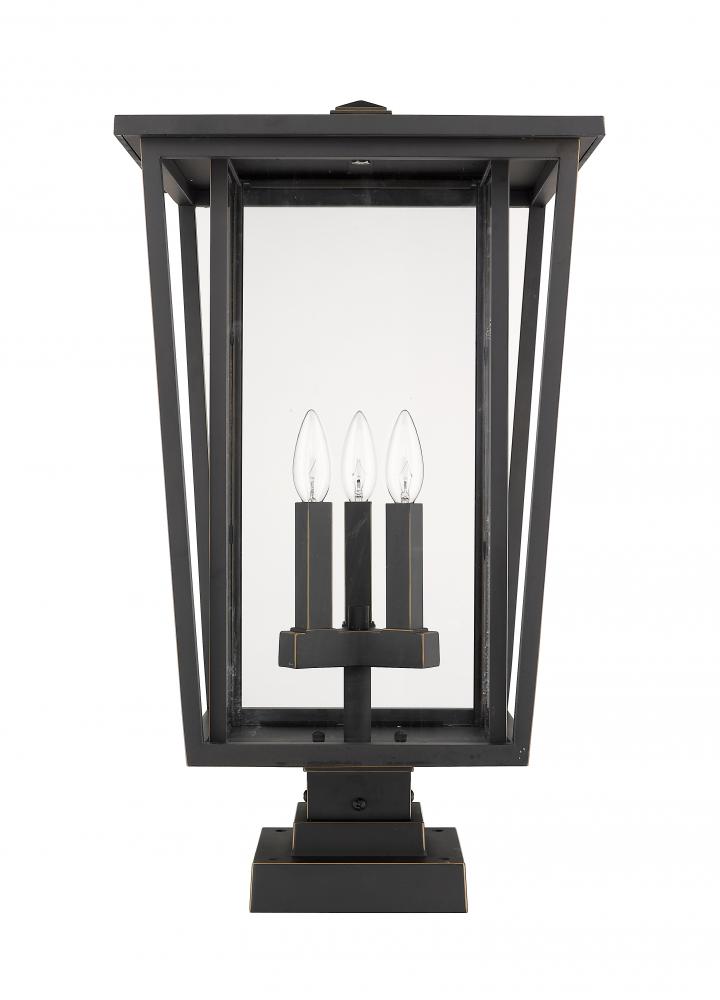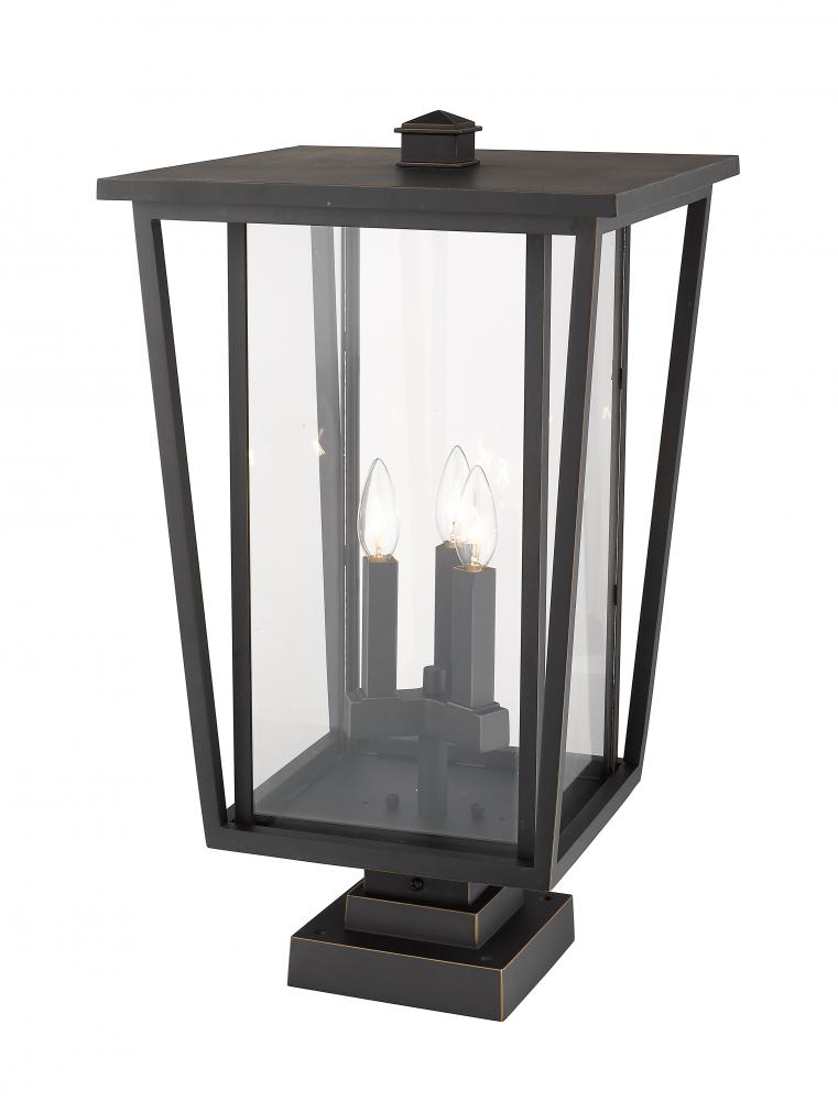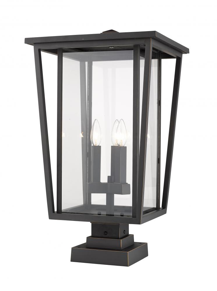 Striking and chic, the Seoul collection of outdoor fixtures updates the classic lantern look and gives it modern makeover. Special cut clear glass panels create a unique geometric look. Finished in either Black or Rubbed Bronze, the Seoul family of fixture