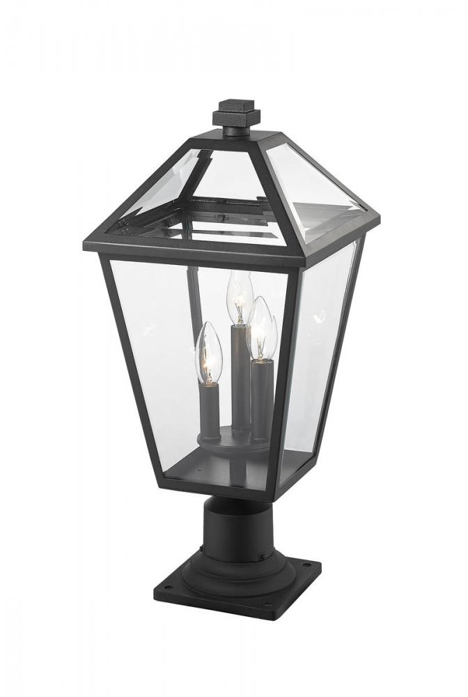 A transitional-style frame with bold glass panels make this a truly timeless collection. Offered in wall mount, pendants and even post lights, the Talbot family is available in two finishes, Midnight Black with Clear beveled glass panels or Rubbed Bronze w
