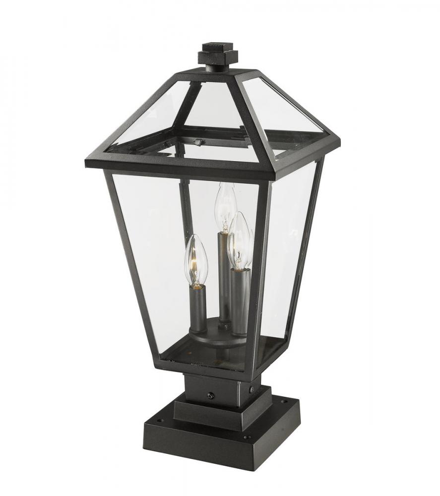 A transitional-style frame with bold glass panels make this a truly timeless collection. Offered in wall mount, pendants and even post lights, the Talbot family is available in two finishes, Midnight Black with Clear beveled glass panels or Rubbed Bronze w
