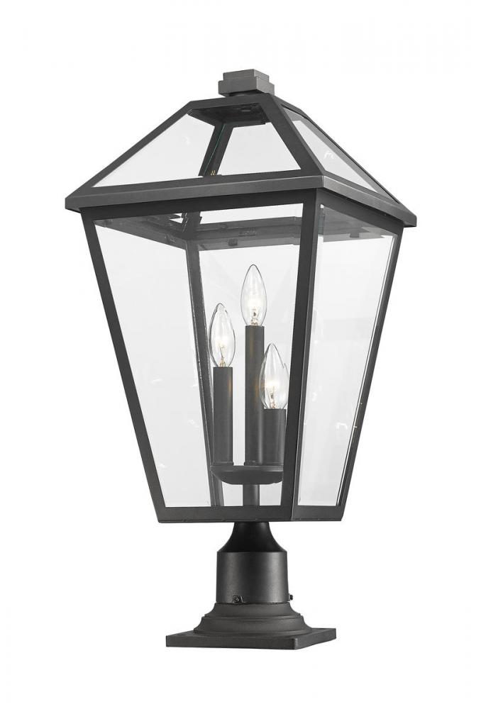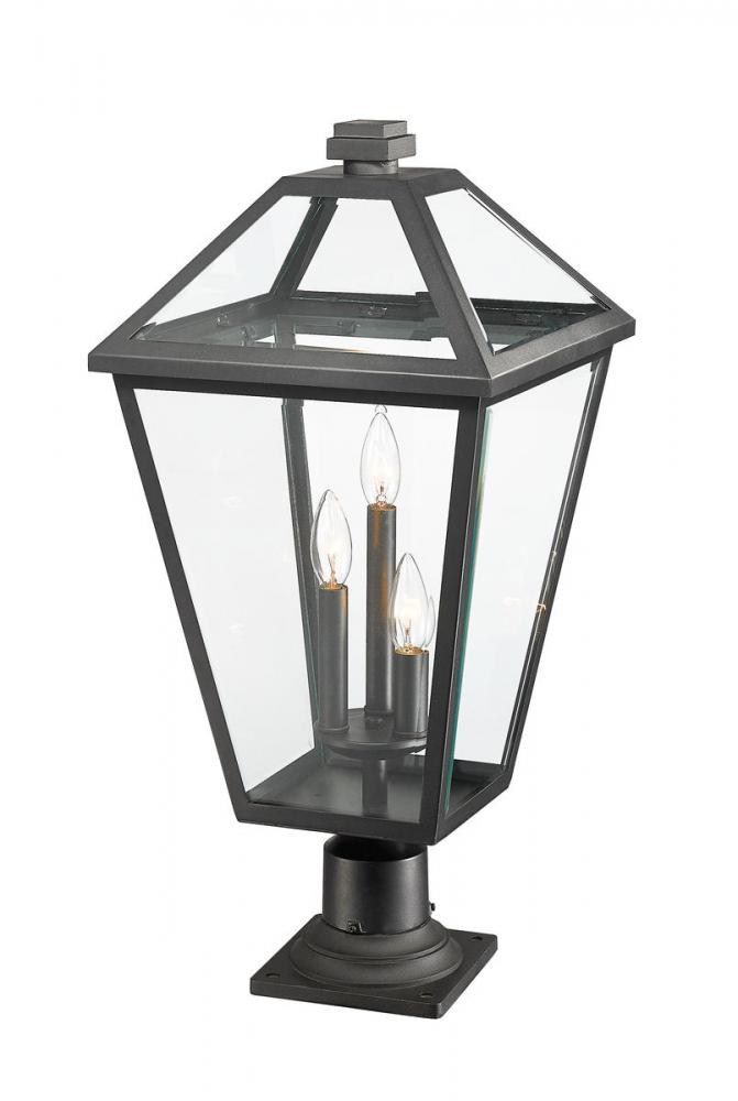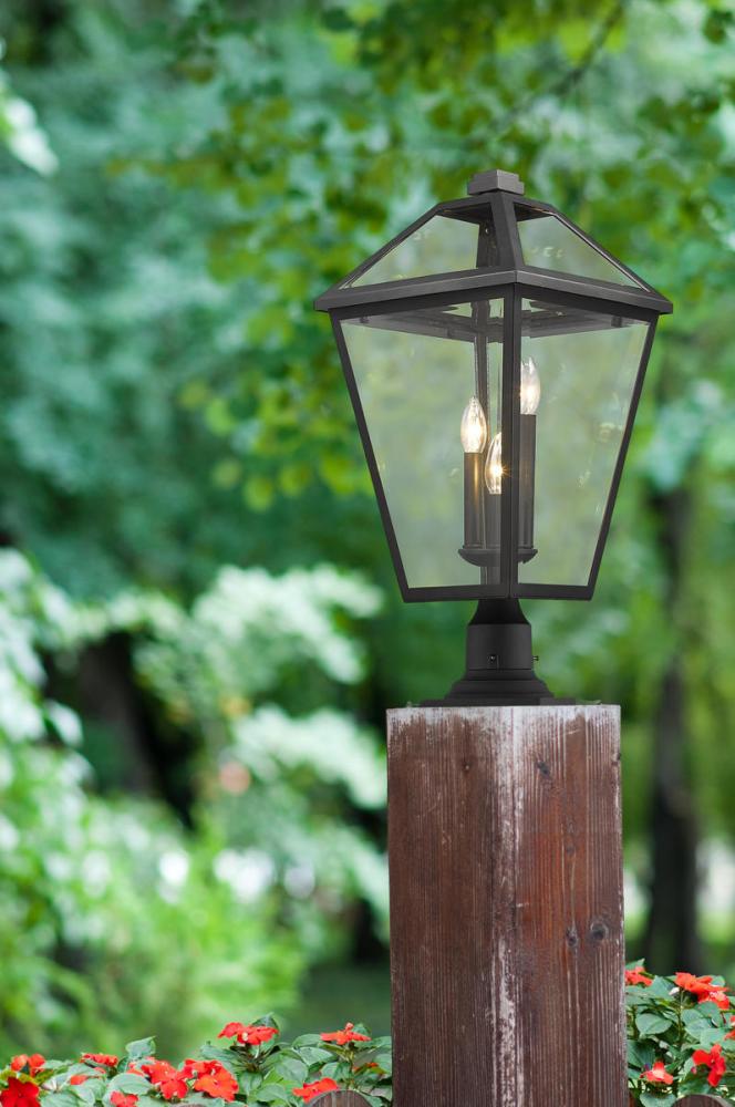 A transitional-style frame with bold glass panels make this a truly timeless collection. Offered in wall mount, pendants and even post lights, the Talbot family is available in two finishes, Midnight Black with Clear beveled glass panels or Rubbed Bronze w