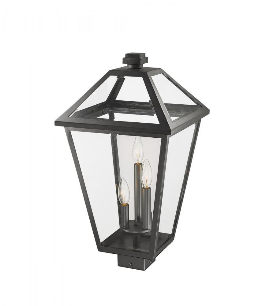 Light up an exterior front or back walkway with a classic fixture reflecting a charming village theme. Made from Midnight Black metal and clear beveled glass panels, this three-light outdoor post mount fixture delivers a fresh upgrade with a square post mount and an artistic industrial-inspired aesthetic.