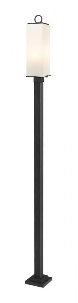 A charmingly simple three-light outdoor post mounted fixture made from steel is enhanced with a black finish and a rectangular silhouette. With a white opal shade with coastal and contemporary styling, making an eye-catching addition to any porch or patio.