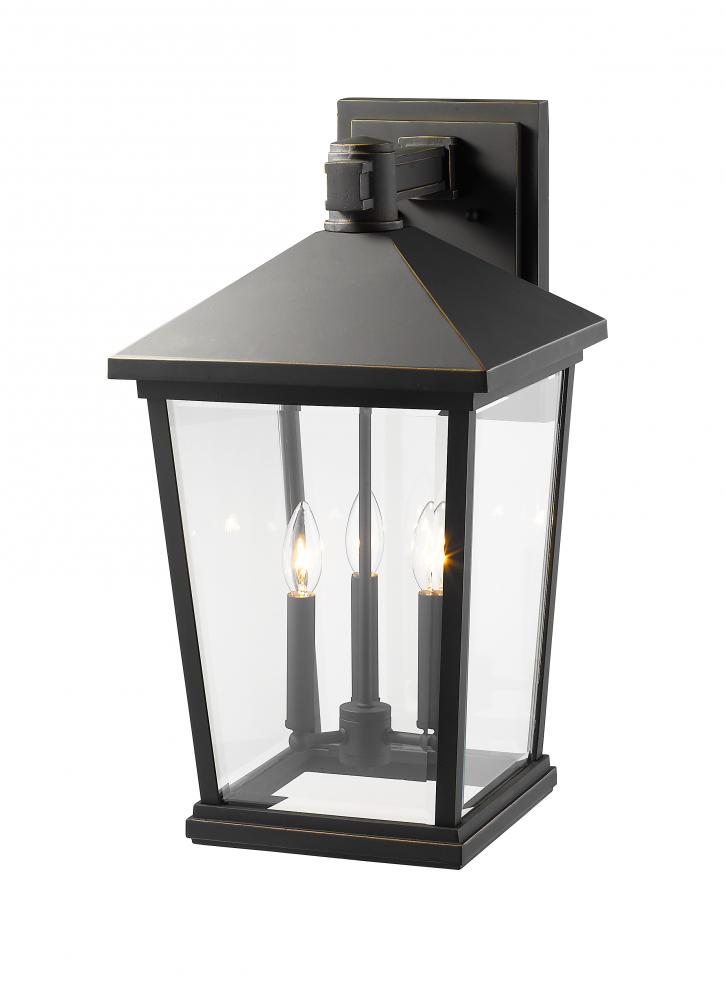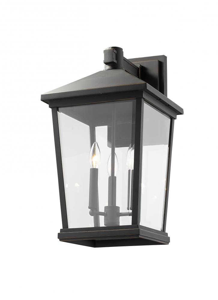 Combine modern and classic charm with this three-light wall light. Structured style from the lantern-inspired silhouette combine with a warm rubbed bronze hue to add warmth.