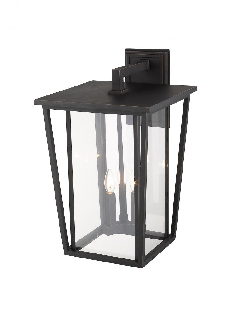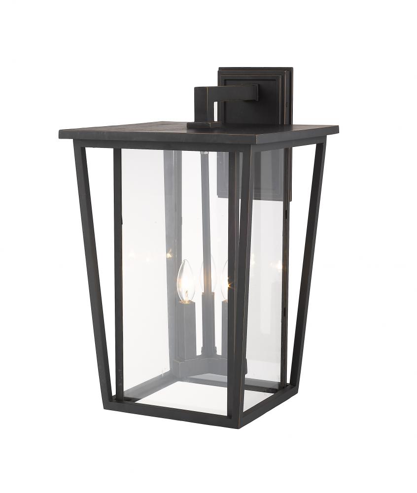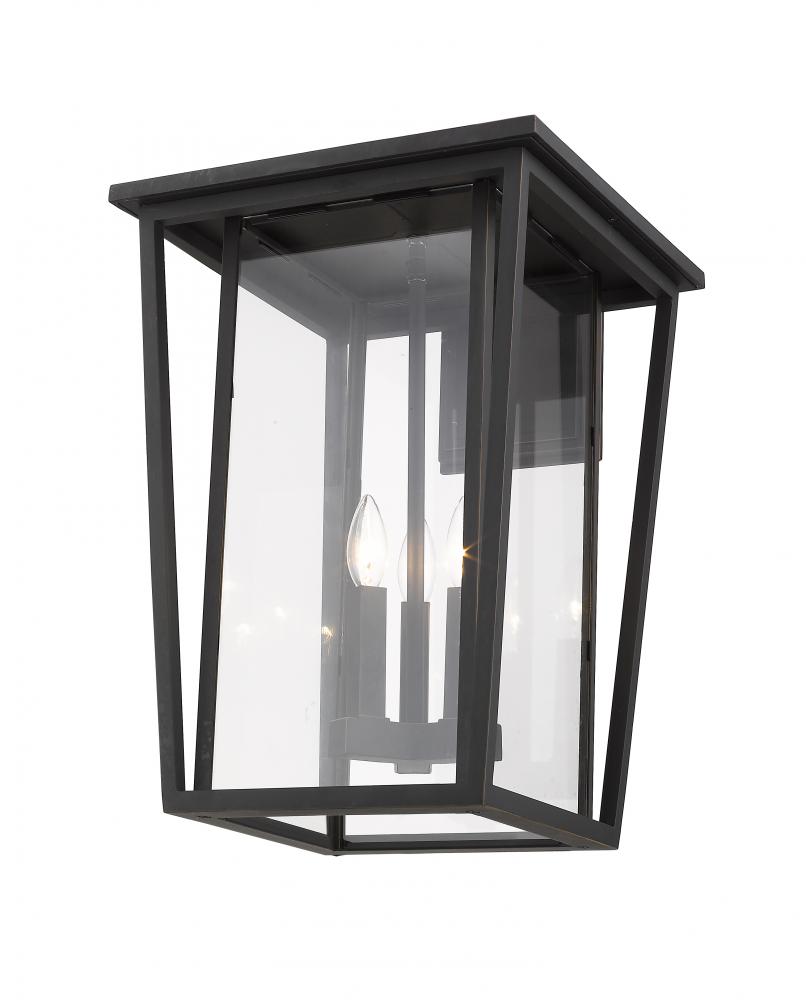 Striking and chic, the Seoul collection of outdoor fixtures updates the classic lantern look and gives it modern makeover. Special cut clear glass panels create a unique geometric look. Finished in either Black or Rubbed Bronze, the Seoul family of fixture