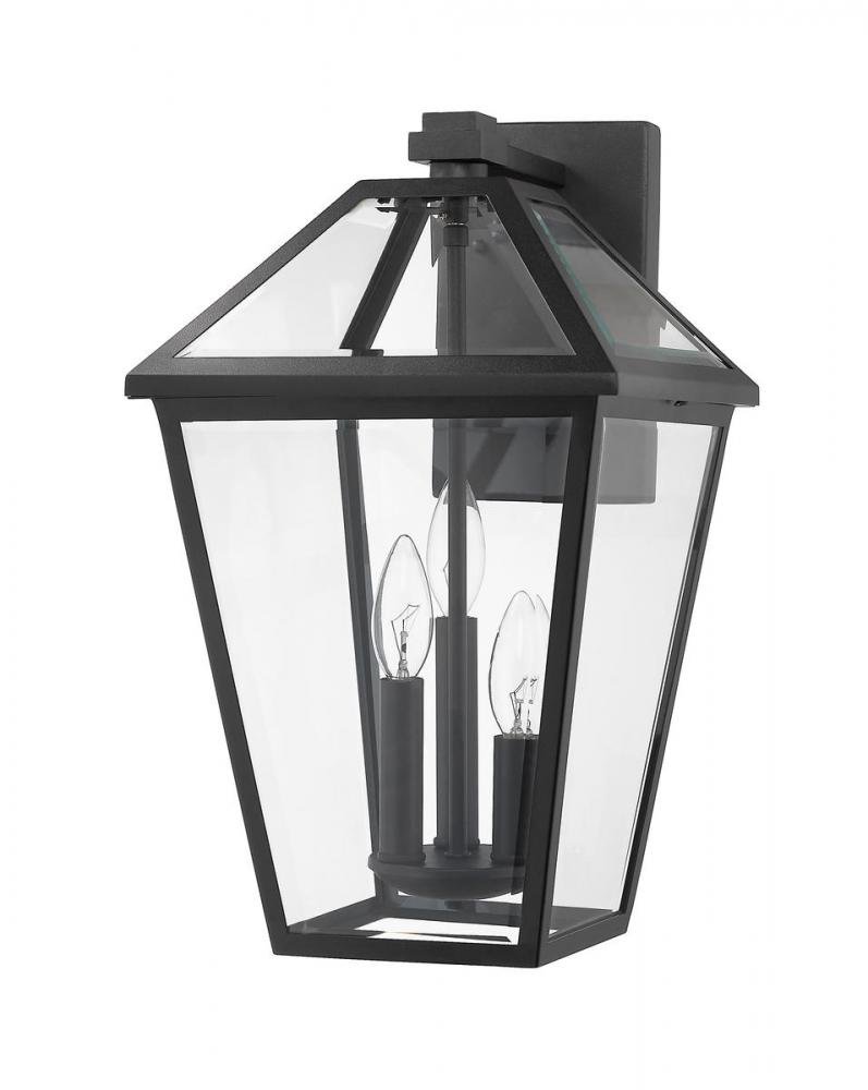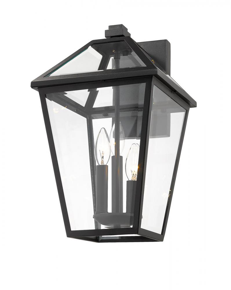 A transitional-style frame with bold glass panels make this a truly timeless collection. Offered in wall mount, pendants and even post lights, the Talbot family is available in two finishes, Midnight Black with Clear beveled glass panels or Rubbed Bronze w