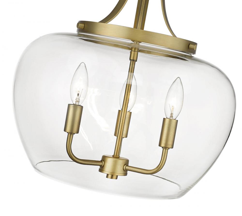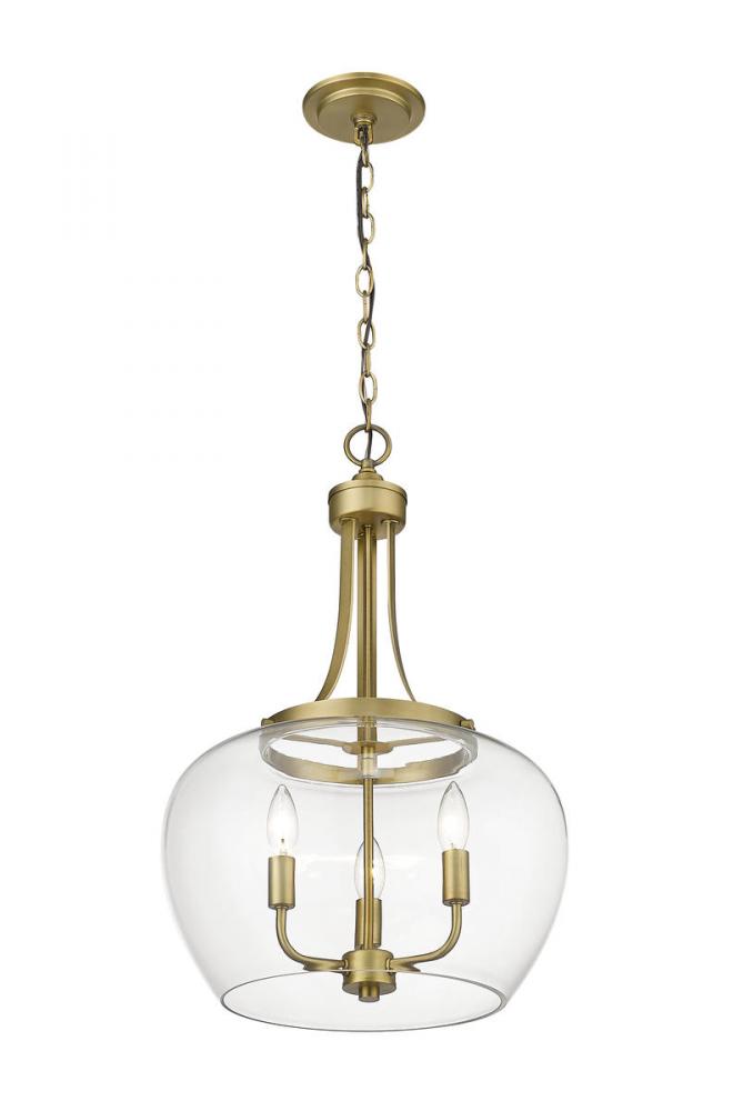 Contemporary elegance makes a difference in this glam steel and glass three-light pendant light, a solid choice for an ultra-modern, custom kitchen, bedroom, or living area. Choose this exquisite pendant from the Joliet collection, admiring its Bordeaux clear glass shade that embellishes an artisanal olde brass finish steel mount, chain, and round canopy, creating a low-key yet high-class effect.