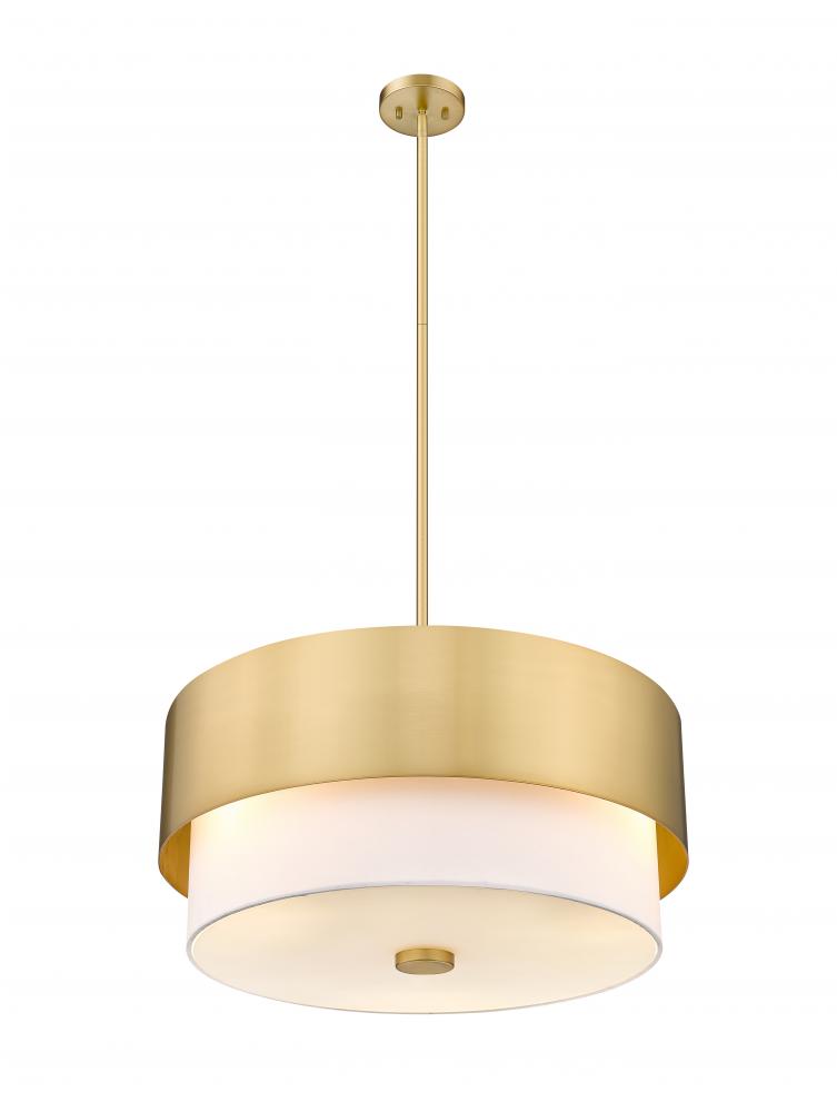 From the Counterpoint collection comes a light fixture with an irresistible blend of Art Deco with Mid-Century Modern style motifs. Simplicity reflects just the right level of sophistication to display versatility in a kitchen, dining room, or foyer, and adds a lush finish that warms any setting. This pendant?s modern gold finish steel frame and white fabric shade offer the optically pleasing round silhouette trending in today?s balanced interior elements, shaping a fixture that becomes a superb source of ambient lighting.