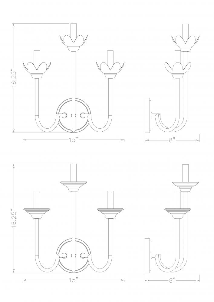 Instill vintage character and feminine charm with the floral embellishments of a transitional three-light wall sconce. In modern gold finish for exceptional warmth, the sconce features three J-shaped arms of varied length, creating a dimensional presentation for candelabra bulbs. The sconce includes interchangeable bobeches in white metal and clear glass, allowing you to change up the look whenever youd like.
