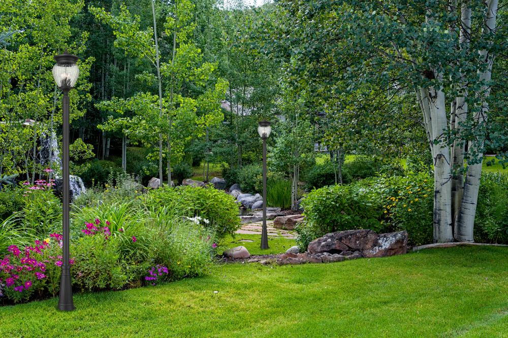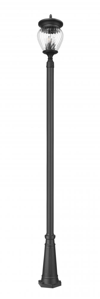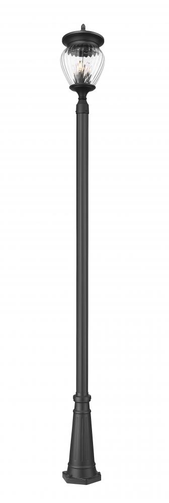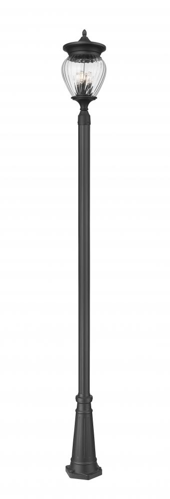 Achieve a lush look in exterior lighting with a soft glow and sleek style. This four-light outdoor post-mounted fixture delivers a teardrop ribbed glass shade for dimensional illumination and pairs it with a clean-lined pole for excellent structure and support. Its gallery inspired style and romantic charm are enhanced with a smooth Coastal black paint finish.