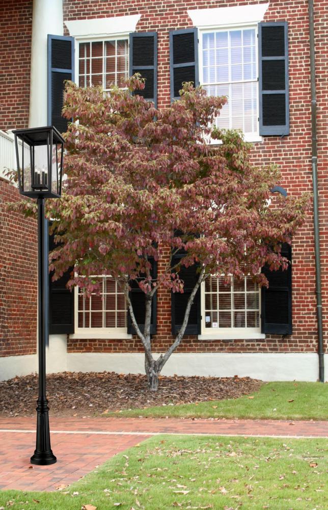 Bring an enticing mixed motif design to an exterior space with this classic four-light outdoor post-mounted light from the Seoul collection. Topped with a geometric-inspired design featuring black finish aluminum and specially cut clear glass, its chic post offers charming texture and a minimalist look.