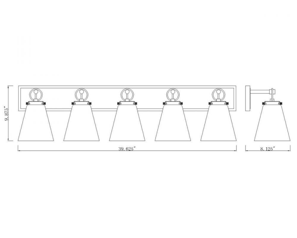 Graceful elegance follows linear styling to deliver a fashionable way to illuminate a contemporary bath space. This five-light vanity light from the Harper collection offers inspiring nautical charm with upscale materials and finishes. A radiant chrome finish steel wall mount and ring and peg accents add whimsical vibes to five delicate conical shades fashioned of sleek clear glass.