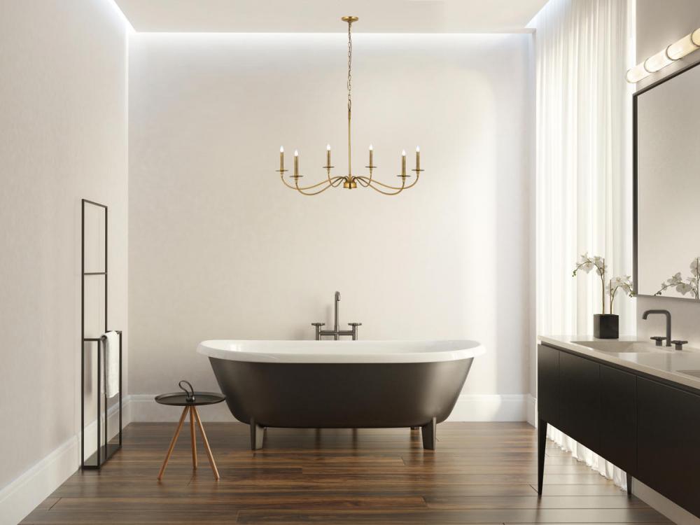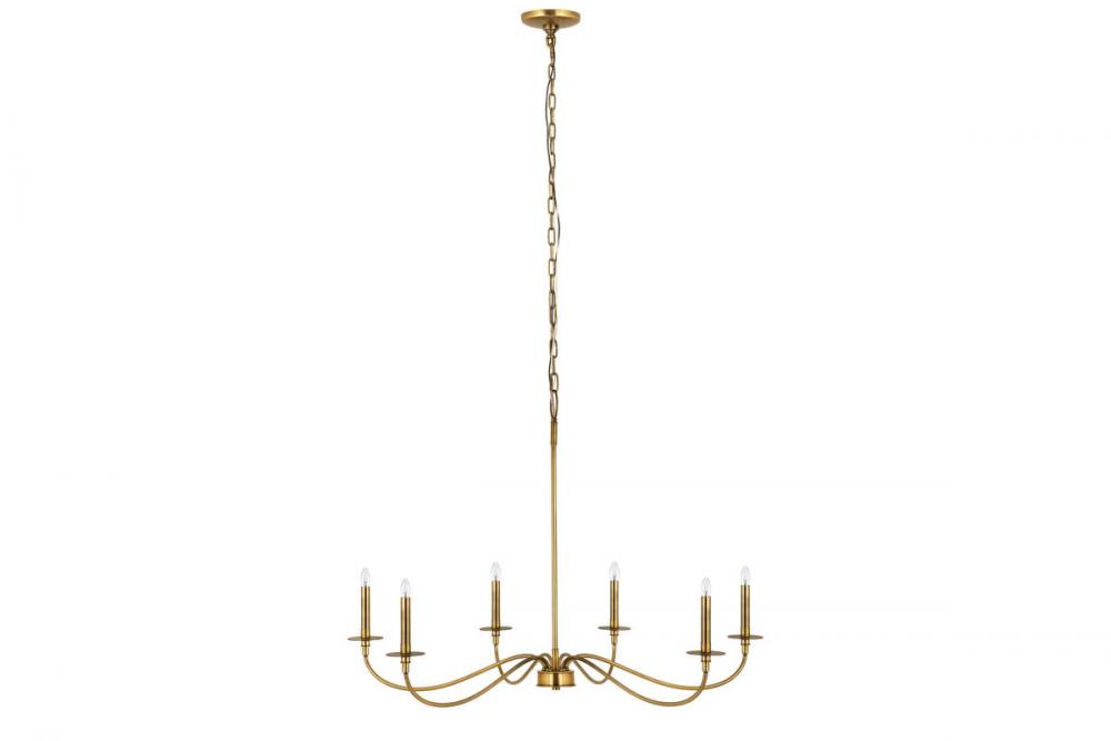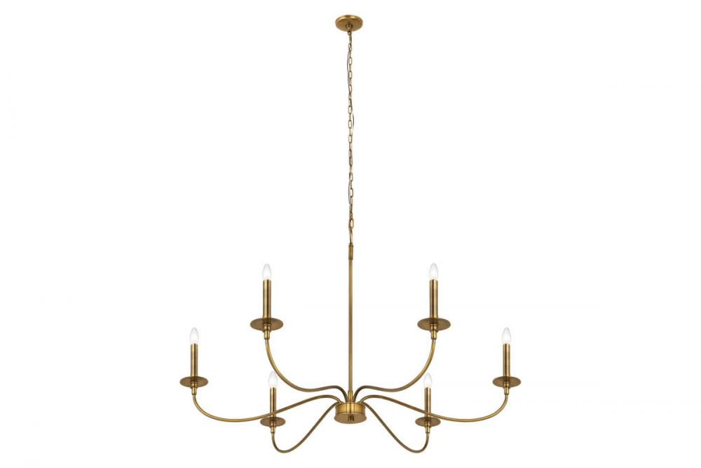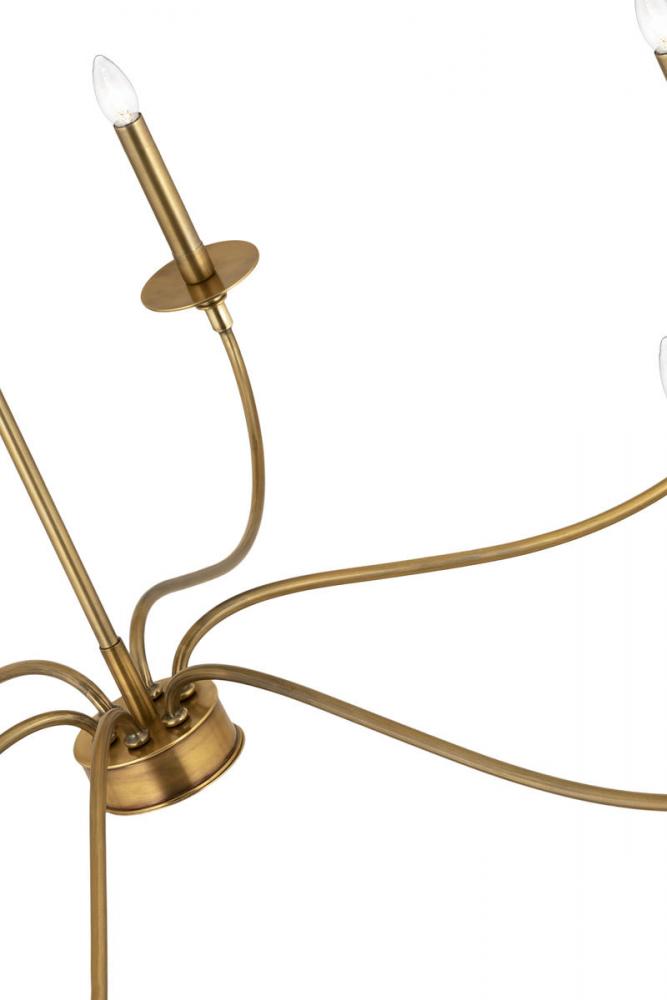 Bring soft romance to a modern or traditional kitchen, dining area, or main living space with this six-light chandelier from the Arrington collection. Crafted of warm rubbed brass finish steel, its long, flared arms create a careful arrangement for placement of candelabra-style bulbs that borrow from a traditional motif.