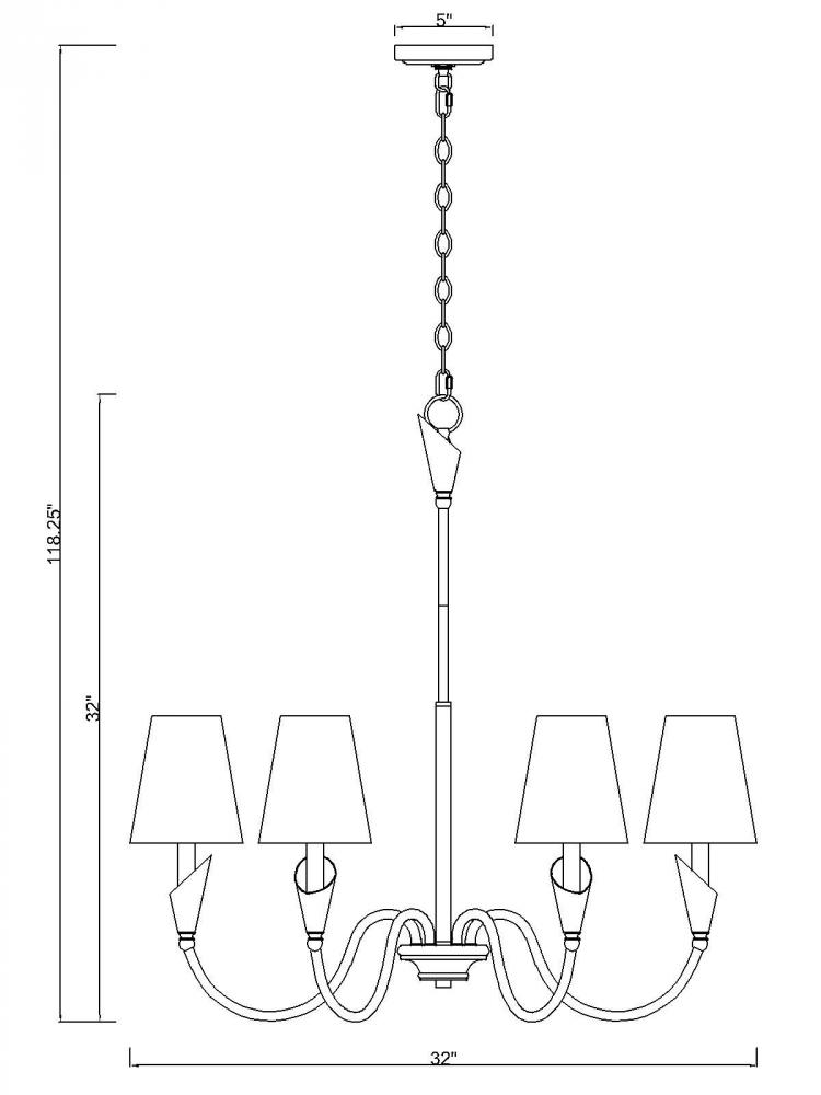 This chandelier draws the eye with its sweeping lines and luminous finishes, offering a modern update to timeless form. The matte black structure is lifted by gold accents, while six white shades diffuse the light in soft, even layers. It?s statement lighting that still feels delicate.