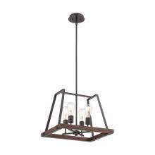 60/6127 - Sherwood - 4 Light Caged Pendant with Clear Glass -Iron Black Finish with Brushed Nickel Accents